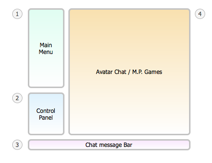 where the avatar chat and multiplayer games will be running. The Avatar Chat will feature a scrollable isometric view in the style of Habbo and the like. When a game is launched the chat will be hidden and the game will take its place.